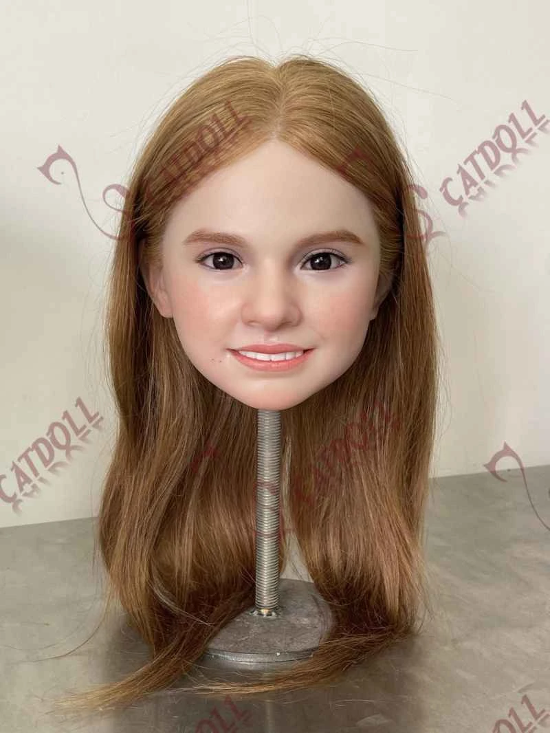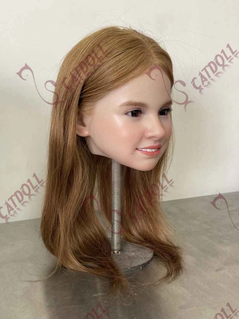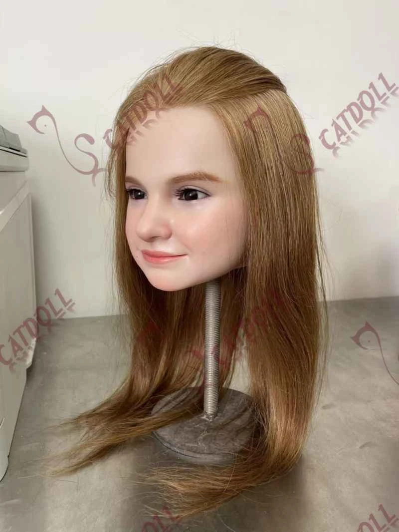 The hybrid silicone head is crafted using a soft silicone base combined with a reinforced scalp section, allowing durable implanted hair. With this design, the head can feature a functional oral structure and an articulated jaw while still supporting securely implanted human-like hair.